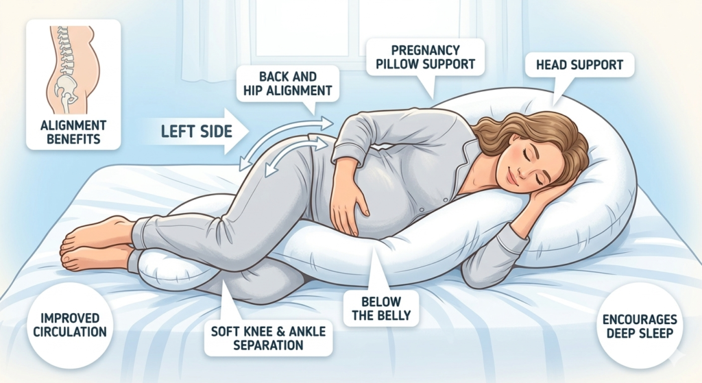 - The Fix: Train yourself to sleep on your left side. Use a U-shaped pregnancy pillow to support your back and tuck a corner under your belly for extra comfort.